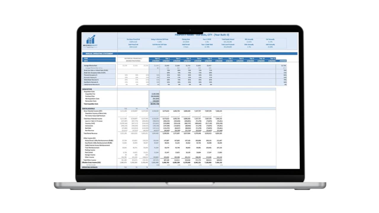 • Detailed Operating Statements: View monthly, quarterly, and annual operating statements for the entire hold period.
